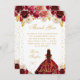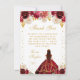 Den här eleganten och det glamorösa Quinceañera-kortet har en vacker prinsessa med mörk hår i en tiara och röd boll-grav. Texten kombinerar handskript och modernt sans serif typsnitt för ett klassligt och sofistikerat utseende. Blommigten och guld-konetti skapar perfekten blandning av rustik och chic. Grafik efter www.etsy.com/uk/shop/SunflowerDayLove
