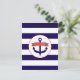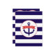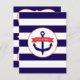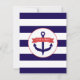 En kallduschinbjudan till havs med en marin blå och vit strimlad bakgrund på framsidan och baksidan. Framsidan har en illustration av ett blått ankare täckt med en röd banderoll som säger: "Det är en pojke!"