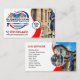Make a splash in the pressure washing industry with this dynamic business card. The bold red and blue accents convey a sense of urgency and cleanliness, while the image of a pristine house emphasizes the results of your work. This design is ideal for professionals specializing in power washing, exterior cleaning, and home maintenance services. Let this card be the first step in securing new business and highlighting your commitment to excellence in making homes shine. It's a powerful tool for any cleaning service.