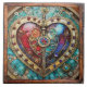 Red & Blue Stached Glass Heart Steampunk Series Kakelplatta