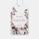 An elegant floral wedding gift tag featuring soft blush wildflowers paired with a rich deep red background. The refined botanical design and romantic typography create a timeless and cohesive look, perfect for adding a personalized touch to wedding favors and gifts. Ideal for formal, modern, and romantic celebrations, this tag complements a coordinated wedding stationery suite beautifully.