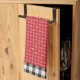 Roligtens design har ett centralt rödbandana mönster-utskrift med svart och vitt plaid grund gräns.