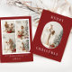Den här platta dubblan i God jul har modern skripttypografi, ett ovalt foto och 4 fotokollage på baksidan. Infoga dina favoritfoton, lägg till en personlig beröring med ditt eget hjärtliga meddelande och anpassa det efter dina önskemål. Foton efter prostooleh / Freepik.