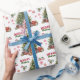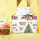 Det upprepade mönster på detta papper om julomslag innehåller en bild av en blond Cocker Spanska hund som bär en festive red båge. Hund sitter framför ett dekorerat Helgdag träd. Stiliserad röd text och grönt säger GOD JUL", och din egen namnteckning finns i två fält för att du ska kunna anpassa den. Andra bilder som ingår i mönster är rött dekorativt snöflingor, polkagrisar och en peppermint lolly pop.