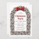 A stylish Christmas party invitation that features a red bow on a festive foliage arched frame and a retro font. This pretty invitation has a Christmas tree and a holiday greeting on the reverse side. It is easy to edit and is perfect for a holiday party. Pair with anything from the SCARLETT collection for a cohesive look.