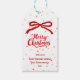Röda Bow god jul-affärspresentant märkre.Red Bow God jul Business Gift Märkre! Den här märkrn har en klassisk röd banderoll och elegant säsong-meddelande och är perfekt för att klä upp klientpresenter, produktförpackningar eller helgdag. Perfekt för små företag, affärskuvöser och företagspresenting - skräddarsy med ditt företag namn eller logotyp för att lämna ett varmt intryck av professionellen under årets mest underbara tid.
