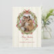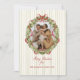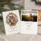 Tidslöst och vismiskt julkort med en sage-grönt, rand bakgrund och en vattenfärgad andedräkt med rött band. Det här helgdag kommer säkert att få alla att känna julstämningen. På framsidan har vi den vackra andedräkten - som på ett lekfullt sätt håller ett foto och på baksidan är en liten svängbåge, en annan fotomall och ett utrymme för din julafton önskemål att fylla i perfekten. Sprid glädje och glädje med vårt vattenfärgade andningskort i julhelgen!