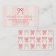 This coquette baby shower books for baby/please bring a book/book request enclosure card features a red bow on a cream background with light pink stripes. The reverse side features a cream background with a red bow pattern. Personalize it for your needs. You can find matching products at my store.