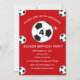 4e födelsedagen party för en fotboll, fläkt, sport, barn, pojkar, för honom. Röd och vit, modern inbjudan till elegant födelsedagsfest. Anpassa den med din information.
