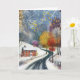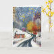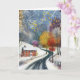 Det vita röda tegelhuset i snö illustrerar bilden av stil på ett hälsningskort. Text kan ändras till önskad hälsning. AI-assisterad grafik som köpts med kommersiell använda. Bild: RedHeronLighthouse