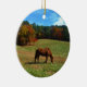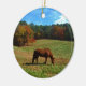 Red Brown horse, fall träd, blå himmel Julgransprydnad Keramik