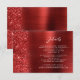 This elegant modern wedding details enclosure card features a red brushed metal background image sprinkled with faux diamond glitter. Customize the white text, with the title "Details" in stylish handwriting script and the remaining text in sans serif font. The reverse side features a matching red brushed metal and faux glitter design.