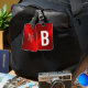 Byt enkelt ut det första monogrammet på framsidan och namn och adress på baksidan av det röda bagagetaggen.