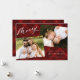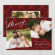 Elegantens fotokort med helgdag "Merry" i ett modernt, vitt kalligrafiskt skript på en målad röd bakgrund. Anpassa fronten genom att lägga till två av dina favoritfoton, hälsning, namn och året. Det roliga julkortet återgår till visningen med ett extra foto med en snöröd bakgrund.