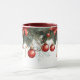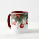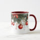 Julen mugg är en vacker inkapsling av helgdag. Den är röd Juldekorationer på Julgran gren. God jul och Gott nytt år!
