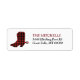 Alla kommer att uppmärksamma dessa söta westerna tematiska returetiketter! Den lämnat sidan har en röd och svart buffelpläterad cowboysilhuett, komplett med rygg. Högerna innehåller anpassningsbarnas text i rött och svart, placerad på en vit bakgrund som är lätt att läsa. Perfekt för julsäsongen, men tillräckligt mångsidig för användan hela året.