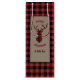 Bakgrunden till den här festliga vin-presentsäcken är en röd och svart buffel som pläderar mönster. Centrumets framsida har en tanklös banderoll med ett matchande rött och svart plaid-hjort. I den röda texten står "God jul", med texten nedan för mottagaren. Påsen har samma bild med texten "Gott nytt år". Du kan enkelt ändra texten så att väskan passar för födelsedagar eller andra tillfällen. Se till att se matchande produkter i vår butik.