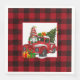 Röd och svart buffalo skade jul med en cute nome som föder hem Julgran i en röd Lastbil för det där Rustiska Pappersservett
