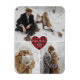 Skapa en vacker fotomagnet med tre helgdag som dekorerats med fallande snö och ett rött buffelhäftande hjärta.