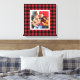 Det här bondhuset stil har en helgdag med en anpassningsbar fyrkantig fotoyta med röd och svart buffel-/plaid-mönstrad bakgrund. Fototips: skörd fotot till fyrkantig form före uppladdning.