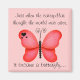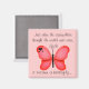 Vackert fjärilsord i rött på en magnet. "Precis när katerpelaren trodde att världen var över blev det en fjäril..."