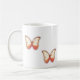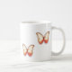 two red butterflies on each side of a classic mug.