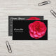 Ett affärskort med en röd Camelia. Affärsområdet namn m.fl. på framsidan, med samma motiv och stil.