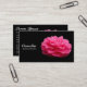 Ett affärskort med ett rött Camelia-fotomotiv. Affärsområdet namn m.fl. på framsidan, med samma motiv och stil.