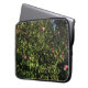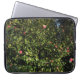 Ett laptop sleeve med en elegant, högupplöst DSLR-foto av en röd Camellia bush i tidigt vår med glansigt löv och blommor av grönt.