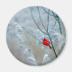En magnet med ett scenbildfotografi med en ljusröd kardinal. Kontrasterade mot en uttorkad vinterbakgrund med en varsam nedgång i snö.