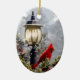 En vacker röd kardinal på en snövinter kväll dekorerar denna julprydnad.