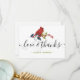 Skicka en tacksedel till din familj och dina vänner för deras helgdag. Den här eleganten är utformad med en röd kardinal som går på ett gren med grönt löv och röda bär. Under en modern handskriven manustypografi står det "Kärlek & Tack" med ditt monogrammade namn för att anpassa sig. På baksidan av kortet finns ett anpassat meddelande med din namnteckning. Det är ett vackert tack!