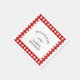 Add these cheerful paper napkins to your table decor. They are decorated with a red check background and are easily customizable with you family name and year.