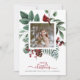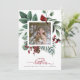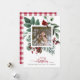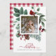 Red Check Photo jul-kardinalHelgdagskorten. Ljusa och festliga vintern blommigt ram.