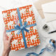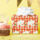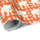 Festive White Elephant Christmas party gift wrapping paper featuring a playful, hand-drawn illustration of white elephants holding a stack of presents and wearing a Santa hat! The background is gorgeous pop with a red checkered gingham print. Original art and design by Annie Montgomery Design.