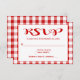 Lägg till lite land-charm till dina inbjudningar med det här tidlösa svarskortet med röd och vit gingham-OSA. Korten har en röd och vit kontroll utan tidpunkter som visar dina mottagnings-/party-detaljer som är tryckta i fet röd kalligrafi och lättläst typsnitt som är markerat mot en kontrasterande röd bakgrund. Kortets baksida har ett samordnat rött och vitt gingham plaid mönster. Röda checkar är perfekt för.... * Bröllop * Företag * Prisutdelningsceremonier * Fundraiser/välgörenhetsmiddagar/evenemang * Party - helgdagar, årsdagar, födelsedagar rulla ner för att visa matchande gingham bröllop och party produkter som du kan ha nytta av..