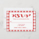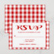 Lägg till lite land-charm till dina inbjudningar med det här tidlösa svarskortet med röd och vit gingham-OSA. Korten har en röd och vit kontroll utan tidpunkter som visar dina mottagnings-/party-detaljer som är tryckta i fet röd kalligrafi och lättläst typsnitt som är markerat mot en kontrasterande röd bakgrund. Kortets baksida har ett samordnat rött och vitt gingham plaid mönster. Röda checkar är perfekt för.... * Bröllop * Företag * Prisutdelningsceremonier * Fundraiser/välgörenhetsmiddagar/evenemang * Party - helgdagar, årsdagar, födelsedagar rulla ner för att visa matchande gingham bröllop och party produkter som du kan ha nytta av..