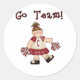 En kvinnlig cheerester med röd kjol och röd pom och text som lyder "Gå team" på cheerwriter T-shirts, mugg, tote bags, kort, knappar, klistermärken med mera.