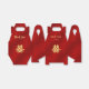 En lyckosymbol för den konstnärliga dubblan i guld på en ruttröd, skakande bakgrund.. Anpassningsbar brud och trimma namn i ett teckensnitt för elegant. Med ett tack på baksidan.