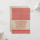 Modern med en vintage-tvist är den här Chicen Chevron-bröllopsinbjudan. Den här utformningen har en antik papper bakgrund och en zigzag chevron mönster i mörk röd. Enkel att anpassa, lägg bara till information om bröllop. Klicka på Anpassa om du vill söka efter fler anpassningsalternativ.