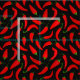 Roligt med mönster av rödchilipaprika på mörk grått/svart bakgrund.
