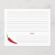 Ett recept i röda och ljusbruna tonar med illustration av röda chilipeppar: perfekt till favoritrecept (t.ex. hett, takos, mexikanska recept etc.) med vänner och familj. Du kan också använda det vid en möhippa!
