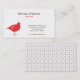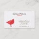 Ren och modern utformning av affärskortet med en enda röd fågelsilhuett i hörnet. Typ anges i mörk brun och röd på ett vitt kort. Kortets baksida har en brun vintage mönster för att motsvara framsidan. © 1201AM DESIGNS