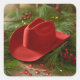 Red Christmas Cowboy Hat Fyrkantigt Klistermärke