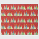 Wrap your holiday gifts with charm and color using this festive red Christmas wrapping paper. The repeating pattern features three whimsical Christmas trees with modern geometric, musical note, and polka dot designs—topped with golden stars on a rich red background.