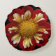 Red Collarette Dahlia-Blommigten på Black Rund Kudde
