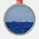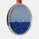 Den röda containerns frakt till havs med den sena eftermiddagen sol på hennes sida.