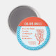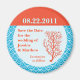 Modern och elegant spara datum magneter. Underbar för ett marint eller nautiskt tema. Har en röd korall på ljusblå bakgrund och mönster gräns. Kombination av koral och turkos färg. Trendig ännu i klass. Lägg till er egen formulering. Kan även anpassas för en födelsedagsfest eller liknande händelse. Matchningsinbjudan, porto frimärke, kuvertförsegling, partiförsegling, planeringshandbok för bröllop och andra produkter som finns i butiken.