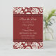 Tillkännagivandekort för bröllop spara datum med elegant rött och benvit blommigt, dämpningsmönster. Anpassade med dina bröllop-uppgifter, som finns i ett stort antal matchande bröllop-produkter. Kontakta oss för att begära en ändring av färg eller en anpassningsbar.