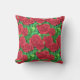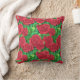 Dekorativ kudde i mönster i rosor, i skuggor av djup förlamning mot ro, mot bakgrund av grönt löv